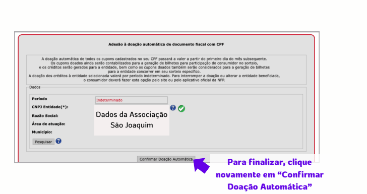 Siga o passo a passo abaixo e confirme sua doação: